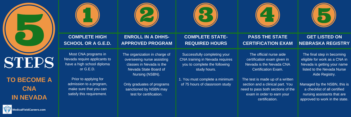 There is a minimum requirement of completing at least 75 hours of training while completing your training to be able to take the CNA certification test in Nevada.