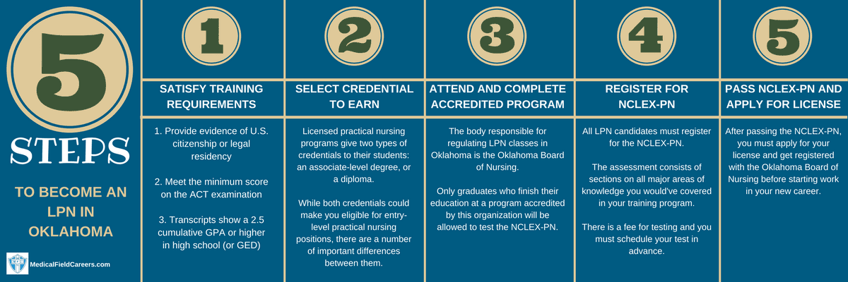 The steps in the process for becoming an LPN in Oklahoma are shown in the following 5 steps below.
