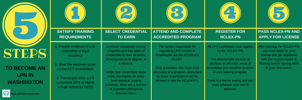 The process for becoming an LPN in WA is summarized below for your convenience in the following steps.