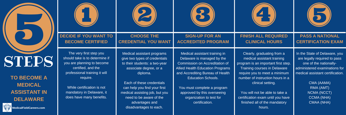 The steps for becoming a medical assistant in DE can be summarized below: