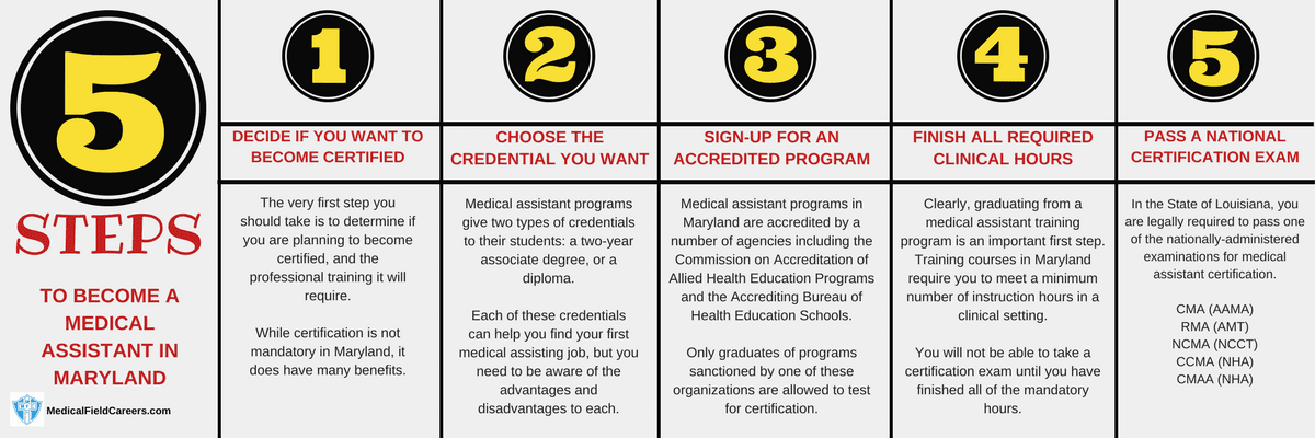 To become a medical assistant in Maryland you must follow the steps listed below: