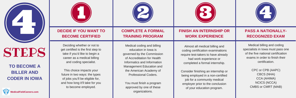 To see the process for becoming a medical biller or coder in Iowa is detailed in the following four steps.