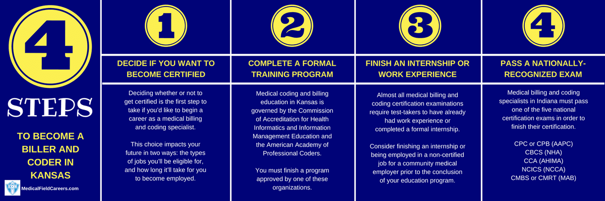 The process for becoming a medical biller or coder in Kansas can be summed up in the following steps.