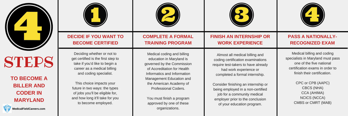 The exact process to become a medical biller or coder in Maryland is detailed below in the following four steps.