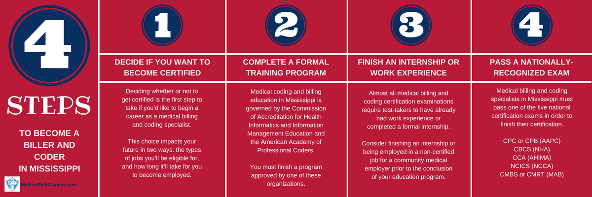 Becoming a medical biller or coder in Mississippi is listed in the following four steps below.