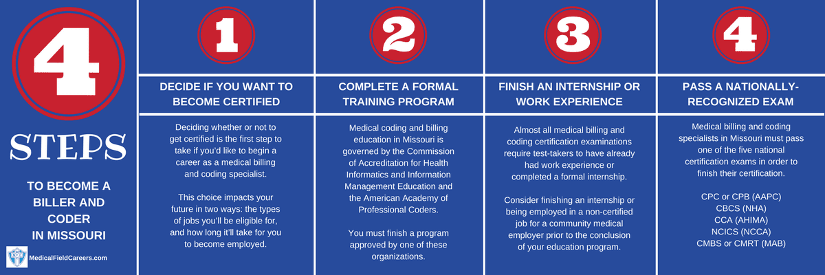 Becoming a medical biller or coder in Missouri is detailed below in the following steps.