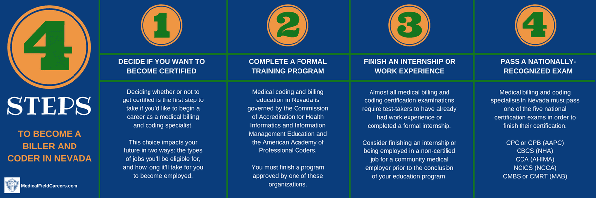 If you are looking at the short process for becoming a medical biller or coder in Nevada, it is summarized in the following four steps.