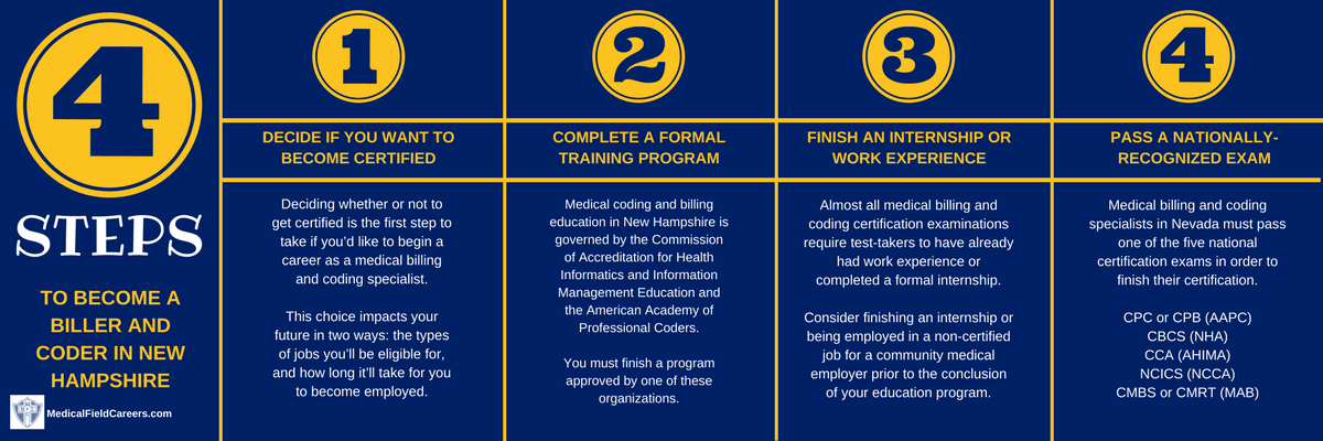 To see the step by step process for becoming a medical biller or coder in New Hampshire see the following steps detailed below.