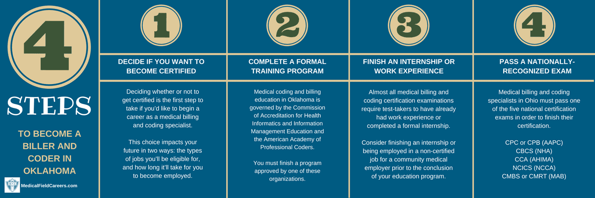 The step by step process for becoming a medical biller or coder in the Sooner State is detailed out in the following steps below.