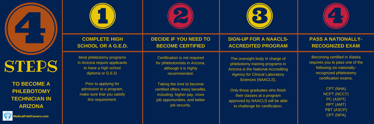 The step by step process for becoming a phlebotomy technician in Arizona listed below in four steps.